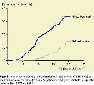 Såvel i observations- som i interventionsstudier har man tidligere vist, at hyperglykæmi og glykæmisk kontrol spiller en vigtig rolle i udviklingen af mikroalbuminuri hos patienter med type 1-diabetes [5-8, 14, 15]. Vi har vist, at dårlig glyk-æmisk kontrol selv kort tid efter debut af diabetes er en vigtig prædiktor for udvikling af mikroalbuminuri, hvilket understreger vigtigheden af tidligt at opnå god glykæmisk kontrol.