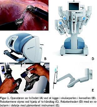 Minimalinvasiv kirurgi har de seneste decennier gennemgået en fantastisk udvikling ikke mindst inden for urologi. Indførelse af laparoskopi har medført mindre incisioner, mindsket blodtab, reduceret postoperativ smerte samt ført til kortere indlæggelse og rekonvalescens. De fleste uro-onkologiske indgreb kan i dag udføres med denne teknik, dvs. indgreb som radikal prostatektomi, cystektomi og nefrektomi, herunder nefronsparende indgreb. Konventionel laparoskopi har dog visse begrænsninger især ved komplekse indgreb som f.eks. radikal prostatektomi. Det skyldes bl.a. ringere afstandsbedømmelse som følge af todimensionelt synsfelt, stive instrumenter med et begrænset antal frihedsgrader for bevægelse samt »omvendt« bevægelsesretning. Med indførelse af robotteknik er mange af disse problemer løst. Et robotsystem består af tre komponenter: 1. Et såkaldt master-slave -system, som medfører intuitiv kontrol af laparoskopiske instrumenter. 2. Et stereoskopisk optiksystem, som muliggør et tredimensionelt synsfelt. 3. Et opkoblingssystem med multiple sensorer for maksimal sikkerhed. Hertil kommer laparoskopiske instrumenter med »håndledsfunktion« (Figur 1 ).