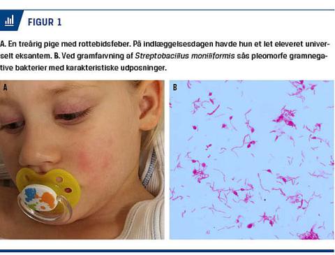 Rottebidsfeber (RBF) er en sjælden infektionssygdom, der forårsages af Streptobacillus moniliformis og Spirillum minus. Sidstnævnte, der ikke kan dyrkes, findes langt overvejende i Asien, hvorimod S. moniliformis ses i Nord- og Sydamerika samt i Europa. Hos rotter, som er det største naturlige reservoir, er bakterien en del af normalfloraen i de øvre luftveje [1]. Op mod 100% af de raske, domesticerede rotter er koloniserede, og transmission til mennesker sker oftest ved bid eller krads, men infektioner er også rapporteret uden [2]. Risiko for at få RBF efter et rottebid er 10%, og uden behandling er mortaliteten ca. 10%. Da rotter er blevet populære som kæledyr har demografien på patientgruppen ændret sig [1].