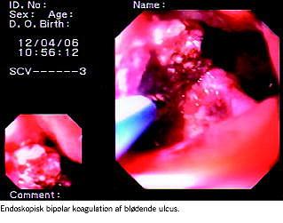 Gennem de seneste årtier er behandlingen af blødende pep-tiske duodenale ulcera og ventrikelulcera forbedret og blevet mindre invasiv. De terapeutiske muligheder ved endoskopi har gennemgået en markant udvikling både kvantitativt og kvalitativt. På trods af disse fremskridt er der stadig en væsentlig risiko for reblødning efter den endoskopiske inter-vention (15-20%), og mortaliteten er stadig stor (5-14%) [1, 2]. I Danmark i 2003-2005 var reblødningsraten inden for 72 timer 21%, 8% blev opereret, og 30-dages-mortaliteten var 11% [3]. Ved reblødning opnåede man i 2003-2005 endoskopisk hæmostase hos 75%, men 30-dages-mortaliteten var signifikant højere i gruppen, der reblødte (21%) [4].
