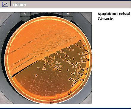 Behandlingen blev ændret til meropenem og gentamicin. Dyrkning af cerebrospinalvæske (CSV) og blod viste efter et døgn vækst af S. Enteritidis (fuldt følsom for ampicillin, ceftriaxon, meropenem, ciprofloxacin, gentamicin og sulfamethizol). Lum-balpunktur, der blev gentaget på dag to, viste også vækst af S. Enteritidis (Figur 1).
