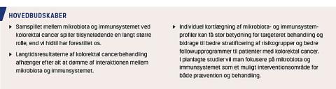 Interaktion mellem immunsystemet og mikrobiota kan blive en vigtig faktor i fremtidig behandling af kolorektal cancer, som formentlig kommer til at omfatte både immun- og mikrobiotamodulerende midler.