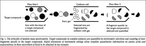 Summary Screening of newborns for inborn errors of metabolism by tandem mass spectrometry. Ugeskr Læger 2002; 164: 5607-12. Tandem mass spectrometry is an analytical method which is being implemented for neonatal screening. The method can determine the content of amino acids and acylcarnitines in neonatal screening samples in one integrated analysis. This allows detection of more than 20 inherited disorders of amino acid, fatty acid and organic acid metabolism. The aggregate incidence of these disorders is in the order of 1:4000. The principal disease which is detectable is medium-chain acyl-CoA dehydrogenase deficiency, which has an incidence of 1:10,000-1:20,000 in Northern Europe. Medium-chain acyl-CoA dehydrogenase deficiency puts the affected at risk of life-threatening metabolic crises, which are preventable if the condition has been diagnosed. Hence, the prognosis is excellent. The central theme for therapeutic management of medium-chain acyl-CoA dehydrogenase deficiency is carbohydrate supplementation, especially in situations of intercurrent illness. Tandem mass spectrometry screening will also enhance the present screening for phenylketonuria which employs a bacterial assay: the screening sample can be obtained 48-72 hours post partum, the false-positive rate will be reduced, and there will be no interference with antibiotics. Tandem mass spectrometry is being used in state-mandated screening panels in a few places and is being tested in pilot studies in many other places. A national prospective pilot project was launched on February 1, 2002 in Denmark. The project includes tandem mass spectrometry screening for galactosemia. In addition to neonatal screening, tandem mass spectrometry can be used for investigation of metabolic diseases, sudden unexpected death of infancy and shaken baby syndrome. Critical appraisal of tandem mass spectrometry will lead to improved health for infants affected by rare inherited disorders of metabolism.