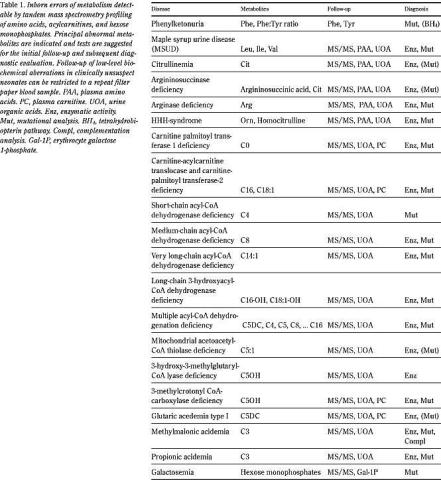 - Zytkovicz TH, Fitzgerald EF, Marsden D, Larson CA, Shih VE, Johnson DM et al. Tandem mass spectrometric analysis for amino, organic, and fatty acid disorders in newborn dried blood spots: a two-year summary from the New England Newborn Screening Program. Clin Chem 2001; 47: 1945-55.