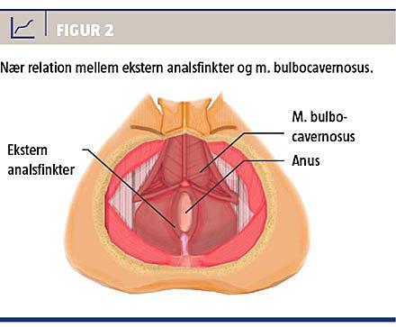 I et studie undersøgte man anatomisk og fysiologisk sammenhæng mellem bulbocavernosusmusklen og den eksterne analsfinkter hos mænd [17]. Bulbocavernosusmusklen er central for erektil funktion. Studiet viste, at muskelfibre fra den eksterne analsfinkter fortsætter uafbrudt over i bulbocavernosusmusklen. Stimulation af glans penis inducerede synkrone kontraktioner af bulbocavernosusmusklen og den eksterne analsfinkter med identiske aktionspotentialer. Den anatomiske og den fysiologiske undersøgelse viste således, at bulbocavernosusmusklen er en integreret del af den eksterne analsfinkter (Figur 1). Denne sammenhæng kan være en mulig forklaring på, at erektil funktion påvirkes ved skader på den eksterne analsfinkter. Dette kan gælde for både fissurer og transsfinkteriske fistler.