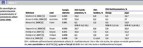 DSH synes at være et tiltagende problem blandt unge. Prævalensen og incidensen af DSH varierer meget - ikke mindst på grund af forskellige definitioner og klassifikation af adfærden. I denne litteraturgennemgang forsøges at sammenligne nogle studier af forekomst fra forskellige populationer i Europa og Australien.
