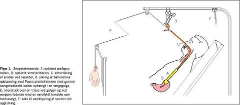 Sengstakensonden (Figur 1 ) er en ventrikelsonde, der er forsynet med en øsofagusballon, der skal komprimere øsofagusvaricerne, og en ventrikelballon, der via et træk i sonden skal komprimere varicernes tilløb fra ventriklen i cardiaregionen for at stoppe blødningen.
