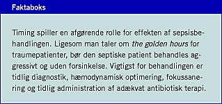 Timing spiller en afgørende rolle for effekten af behandlingen. Ligesom man taler om the golden hours for traumepatienter, bør den septiske patient behandles aggressivt og uden forsinkelse.