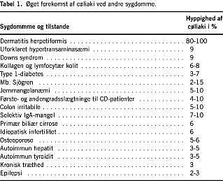 Der er nu bred enighed om, at systematisk screening af visse patientgrupper i både primær- og sekundærsektoren er berettiget [2, 5, 6]. CD forekommer med betydeligt større hyppighed ved en lang række sygdomme og tilstande, hvor serologisk screening altid bør overvejes, selv om der kun er uspecifikke eller ingen mave-tarm-symptomer (Tabel 1).