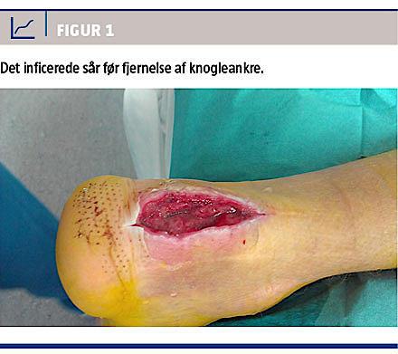 I juli 2013 tog patienten til Kenya på ferie, hvor det endnu ikke fuldt ophelede sår kom i kontakt med vand fra Det Indiske Ocean. Efter hjemkomst blev der på ny konstateret abscesdannelse i cikatricen og MR-verificeret knogleødem i calcaneus, hvilket førte til yderligere tre kirurgiske revisioner (Figur 1).