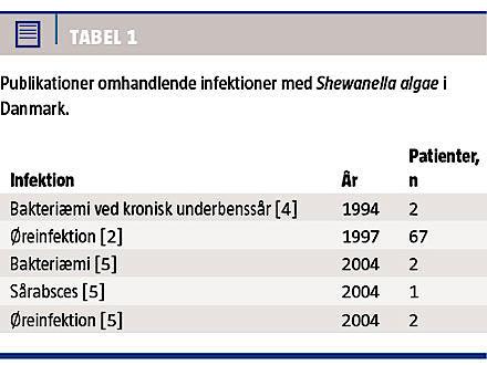 Shewanella algae er en gramnegativ havbakterie, der fortrinsvis findes i tropiske områder, men som også er blevet påvist i danske farvande om sommeren [1]. Globalt er der kun beskrevet få infektioner med denne bakterie, primært hud- og bløddelsinfektioner [1]. I Danmark er der derudover beskrevet øreinfektioner [2, 3].