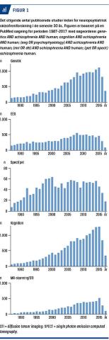 Der indgår ingen objektive markører i de anvendte psykiatriske diagnosekriterier DSM-5 (USA), ICD-10 (Europa) og ICD-11 (som forventes publiceret i 2018). Dette har foranlediget en del debat, og som reaktion på udgivelsen af DSM-5 i 2013 trak National Institute of Mental Health (NIMH) i USA al økonomisk støtte til psykiatriske forskningsprojekter, hvor man alene anvendte DSM-5-kriterierne og ikke medtog biologiske markører [2]. Bag den radikale udmelding lå holdningen, at nok har årtiers satsning på biologisk psykiatri givet akademisk afkast i form af et støt stigende antal publikationer og en dybere forståelse for psykiske lidelsers biologi, men denne viden er indtil nu ikke implementeret i klinisk psykiatrisk praksis (Figur 1).