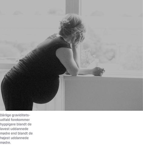 Lav fødselsvægt, for tidlig fødsel, dødfødsel og medfødte misdannelser forekommer hyppigere hos mødre med lavt uddannelsesniveau end hos mødre med højt uddannelsesniveau.