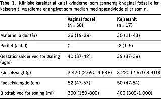 Studiepopulationen bestod af to grupper: 1) 71 raske førstegangsfødende kvinder med en normal enkeltgraviditet og forventelig normal fødsel og 2) 22 raske kvinder med en normal enkeltgraviditet og forventeligt elektivt kejsersnit til terminen udført i spinal anæstesi og uden profylaktisk antibiotika. Indikationer for elektivt kejsersnit var: underkropspræsentation, tidligere kejsersnit og mekanisk misforhold. Eksklusionskriterierne for begge grupper var: maternel sygdom, narkotika- eller alkoholmisbrug, præeklampsi, intrauterin væksthæmning, placenta prævia og urinvejsinfektion.