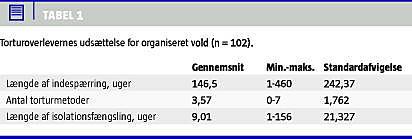 Resultater: Torturoverleverne havde symptomer på svær traumatisering målt med Hopkin's Symptom Checklist-25, men i mindre omfang end torturoverlevere fra andre kulturer.