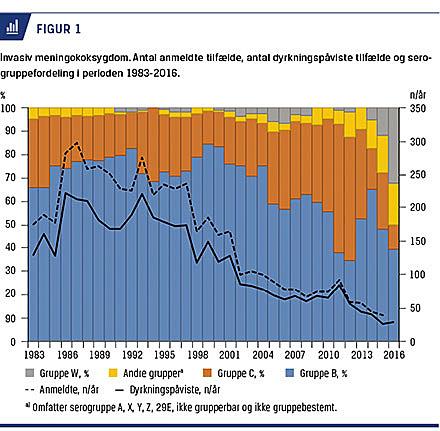 IMS er telefonisk og skriftligt anmeldelsespligtig og overvåges desuden via isolatindsendelse til referencelaboratoriet. Incidensen har i Danmark været faldende i de seneste årtier, i 2016 blev der anmeldt 35 tilfælde [3]. SG-W har tidligere kun forårsaget få tilfælde årligt, men i 2016 var det den næsthyppigste med otte tilfælde (Figur 1), der blev vurderet at være uafhængige af hinanden. Mindst seks af de otte tilfælde tilhørte cc11.