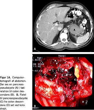 Pseudocyster er en kendt komplikation ved både akut og kronisk pankreatitis. Enkelte tilfælde af spontan ruptur til peritoneum eller diverse hulorganer er beskrevet i litteraturen. Især ved dannelse af colonfistel er der stor risiko for yderligere komplikationer i form af intraperitoneal ruptur, massiv blødning eller fulminant sepsis [1]. På grund af den relativt sjældne forekomst af pancreaspseudocyster kompliceret af colonfistler er behandlingen fortsat omdiskuteret.