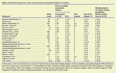 Forfatterne til denne artikel havde før undersøgelsen defineret hvor meget et resultat maksimalt måtte afvige fra 0-prøven (Tabel 2). De amerikanske regler (Clinical Laboratory Improvement Amendments, (CLIA)) [4] og den klinisk relevans for lægerne i almen praksis var med i overvejelserne.