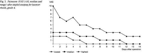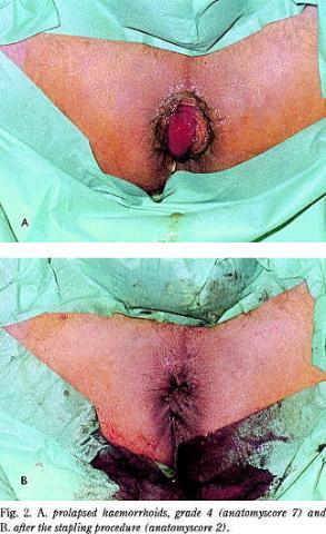 Discussion: Stapled anopexy restored surgical anatomy towards normal, with moderate pain and few complications. Control of symptoms and patientsatisfaction was high. The procedure is a new option in the treatment of severe haemorrhoids rather than an alternative to open haemorrhoidectomy.