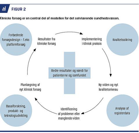 ineffektive interventioner kunne ophøre. I rapporten beskrev man, hvordan kliniske forsøg var en central del af en selvforstærkende udvikling – det selvforbedrende sundhedsvæsen – hvor klinikerne uafhængigt af kommercielle interesser initierer kliniske forsøg, som sammen med implementering og kvalitetssikringsstrategier forbedrer sundhedsvæsenet i en selvforstærkende cirkel (Figur 2) [4].