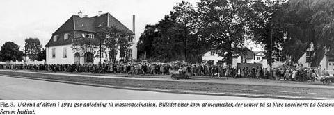 Under anden verdenskrig blev Danmar k ramt af en difteriepidemi. Massevaccination mod difteri fandt sted i København 1941 med vaccine fremstillet af Statens Serum Institut (Fig. 3 ). Ved krigens slutning og i de første efterkrigsår var sygdomsbilledet præget af mange tilfælde af tyfus, plettyfus og tuberkulose forårsaget af de store flygtningestrømme sydfra og af en høj forekomst af kønssygdomme. Alle gravide blev som følge heraf fra 1946 tilbudt rutinemæssig WR-screening med henblik på forebyggelse af medfødt syphilis, og prøverne blev analyseret på Instituttet.