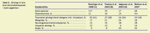 <li>Jørgensen G, Clausen EW, Mantoni MY et al. Ætiologi og diagnostiske metoder ved stemmebåndsparese. Ugeskr Læger 2003;165:690-4.</li>