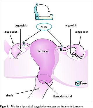 Efterhånden foretages de fleste sterilisationer i Danmark laparoskopisk. Ved den laparoskopiske sterilisationsmetode anvendes der i de fleste tilfælde Filshies clips (Figur 1 ). Disse clips er en titaniumclips, som ikke indeholder nikkel, og som på grund af deres magnetiske neutralitet ikke giver problemer ved avancerede skanningsmetoder eller i lufthavnenes metaldetektorer.