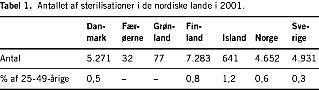 Antallet af steriliserede kvinder i de øvrige nordiske lande i 2001 fremgår af Tabel 1 . I England bliver næsten 50.000 kvinder steriliseret årligt [7].
