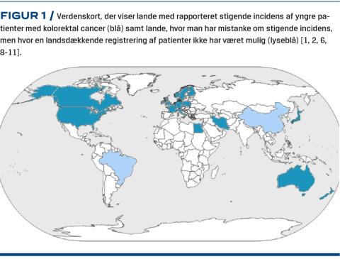 Globalt er der evidens for, at incidensen af kolorektal cancer diagnosticeret hos yngre patienter har været stigende siden 1990’erne. Der er især observeret en stigning i Nordamerika, Europa, Australien og New Zealand (Figur 1) [1, 6-8].