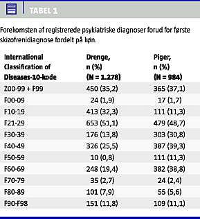 Materiale og metoder: Undersøgelsen inkluderede patienter i alderen 0-21 år, der i årene 1994-2007 var registreret med International Classification of Diseases (ICD)-10 diagnosen skizofreni (F20.xx) i Det Psykiatriske Centrale Forskningsregister.