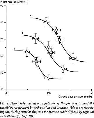 Med baggrund i den arterielle barorefleks antages det ofte, at hjertefrekvensen stiger, når blodtrykket falder, men hjertefrekvens og blodtryk ændres som regel parallelt. De arterielle baroreceptorer fastholder den aktuelle hjertefrekvens og blodtryk, men de er uden selvstændig betydning (de »resættes« til det aktuelle blodtryk; Fig. 2). Hjertefrekvensen integreres af impulser fra centralnervesystemet balanceret af reflekser af den centrale cirkulation og fra fx hud og muskler med samtidig påvirkning fra humorale faktorer.