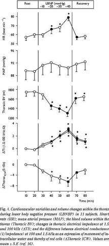 - Perko G, Payne G, Linkis P, Jørgensen LG, Landow L, Warberg J et al. Thoracic impedance and pulmonary atrial natriuretic peptide during head-up tilt induced hypovolaemic shock in humans. Acta Physiol Scand 1994; 150: 449-54.
