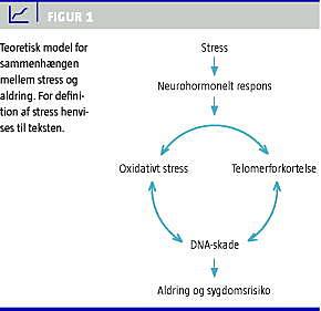 Det er blevet påvist hos rotter, at kortikosteron alene kan fremkalde de samme biokemiske tegn på øget oxidativt stress i lever, hjerte og hjerne, som ses efter kronisk immobilisationsstress [9]. Endvidere inducerer kortikosteron dosisafhængigt mitokondriel oxidativ DNA-skade i leveren [15]. Vi har for nylig fundet en association imellem 24-timers-urinudskillelsen af kortisol og markører for oxidativ DNA- og RNA-skade hos ældre, overvejende raske mennesker (n = 220) [16]. Samlet er det sandsynligt, at de accelererede cellulære aldringsfænomener, der er observeret ved psykologisk stress, er medieret af stresshormoner.