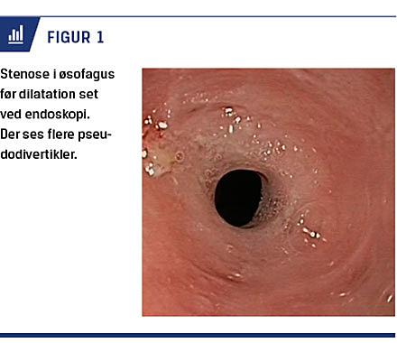En 68-årig mand blev henvist med henblik på endoskopisk ballondilatation af en striktur i øsofagus. Patienten var tidligere blevet behandlet med god, men temporær, effekt. Ved den første dilatation var der blevet taget biopsier, der havde vist kronisk inflammation uden tegn til malignitet. Man havde derfor tolket strikturen som værende sekundær til gastroøsofageal reflukssygdom og sat patienten i behandling med højdosisprotonpumpehæmmer.