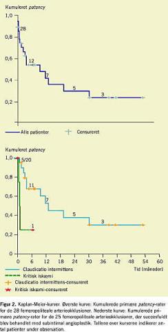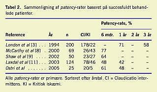 tionen var symptomgivende underekstremitetsiskæmi, defineret som claudicatio intermittens eller kritisk iskæmi. Patienterne blev fulgt for at vurdere holdbarheden ( patency ). Resultaterne er retrospektivt opgjort.