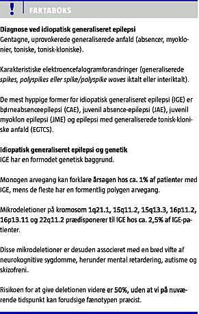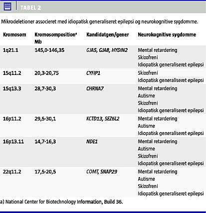 Nature Genetics og Brain har for nylig offentliggjort to artikler fra et stort europæisk konsortium (EPICURE), som forfatterne til denne artikel er en del af [2, 3]. I artiklerne præsenteres undersøgelsesresultater, der viser, at idiopatisk generaliseret epilepsi (IGE) også kan forårsages af mikrodeletioner på kromosom 1, 15, 16 og 22.