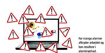 Mange medicineringssystemer har en form for beslutningsstøtte indbygget, så brugeren får en alarm, hvis der ved ordinering af et bestemt lægemiddel forekommer cave eller interaktion. van der Sijs et al [16] undersøgte studier af lægers reaktion på disse advarsler og fandt, at lægerne tilsidesatte alarmen i 49-96% af tilfældene. Der kan være gode kliniske begrundelser for at tilsidesætte en alarm, såsom at alarmen har lav specificitet, lav sensitivitet, indeholder uklare oplysninger eller afbryder arbejdsgangen unødvendigt. En stor hyppighed af alarmer kan medføre alarmtræthed, som resulterer i, at denne form for beslutningsstøtte deaktiveres.