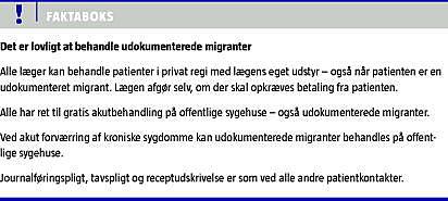 Mange læger og sygeplejersker er i tvivl om, hvad de kan og må gøre, når udokumenterede migranter henvender sig på skadestuen eller i almen praksis [2, 3]. I denne statusartikel vil vi give en oversigt over praktiske og juridiske forhold vedrørende lægearbejde med udokumenterede migranter, herunder gravide og børn.