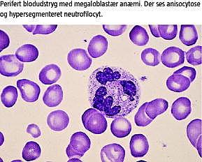 Brystbørn, der er ernærede af veganermødre har risiko for at udvikle B12 -mangel med påvirket hæmatopoiese og degenerative nerveforandringer [1, 4]. Mens barnets megalocytære anæmi i løbet af dage remitterer på B12 -behandling, er nogle neurologiske skader blivende, herunder demyelinisering, der måske er forårsaget af cerebral metioninmangel [5]. Schenk et al [1] fandt, at seks børn, der blev diagnosticeret ti måneder gamle med B12 -mangel efter behandling, udviklede sig normalt, mens seks børn, der var diagnosticeret 13 måneder gamle, havde varige neurologiske skader på trods af behandling. Tidlig diagnostik af B12 -mangel er således vigtig. Diagnostikken af B12 -mangel hos spædbarnet inkluderer måling af p-cobalaminer, metylmalonat og aminosyrer, samt urinmetabolisk screening. Det er af afgørende betydning, at vegetarianere og veganere er opmærksomme på, at deres kosts indhold af B12 er insufficient. Af hensyn til fosteret og det diende barn er det nødvendigt, at moderen profylaktisk får B12 -tilskud i tabletform og som injektion ved manifest B12 -mangel. Denne behandling forebygger såvel den megaloblastære anæmi som den potentielt irreversible neurologiske skade.