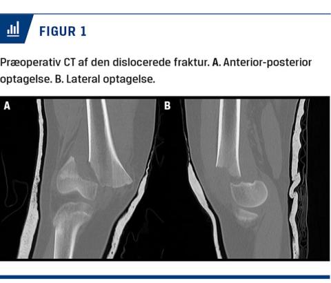 Der blev foretaget CT mhp. at udelukke SH-type IV-epifysiolyse. CT’en bekræftede, at der var tale om en SH-type II-epifysiolyse, og operationen blev planlagt og udført (Figur 1).