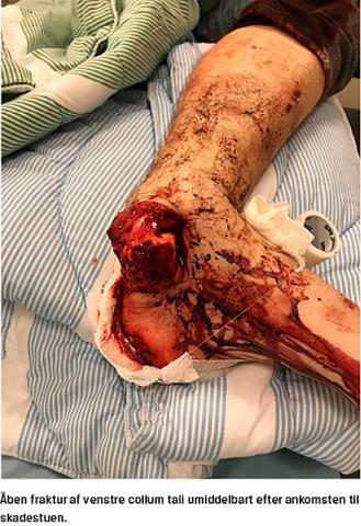 En 18-årig mand med epilepsi blev indbragt til et akutsygehus med åben, fejlstillet fraktur af det ene fodled. Han bidrog ikke til anamnesen, men ifølge ambulancepersonale var han faldet ned ad en trappe. Man fandt normal puls i arteria dorsalis pedis, men der kunne ikke mærkes puls i arteria tibialis posterior. Fodens sensibilitet var normal. Straks efter ankomsten blev der givet tetanusvaccine, immunglobulin og antibiotika.
