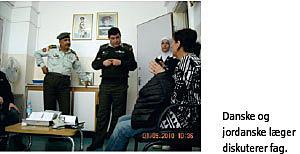 På vores kursus om den arabiske patient tog vi i april 2012 for anden gang til Amman i Jordan. Forinden havde vi to dages kursus i Danmark. Her gennemgik og diskuterede vi nogle af de problemstillinger, som er relateret til den mellemøstlige patient. Vi lærte om: personlighed og psykologi i vestlig kultur sammenlignet med i arabisk kultur, brugen af tolke i det kliniske arbejde samt opsporing og udredning af demens blandt vores indvandrerpatienter og de vanskeligheder, der er forbundet hermed. Vi hørte om Etnisk Ressourceteam. To intensive dage som oplæg til et møde med den hverdag, som mange af vores muslimske patienter kommer fra, og hvor de ofte lige konsulterer en læge eller to. Vi besøgte et militærhospital, hvor vi blev mødt af læger i militæruniform (børnene kunne blive bange, hvis de mødte en læge i hvid kittel). Vi blev særdeles vel modtaget og fandt, at der var venlighed og humor bag uniformerne. Det var især interessant at mødes med praktiserende læger, som vi havde nogle spændende diskussioner med. Bl.a. diskuterede vi, om man skulle oplyse en patient om en alvorlig diagnose. Her gik man ikke ind for »vestlig« åbenhed, som, man mente, kunne skade patienten unødigt.