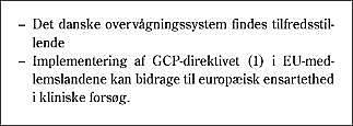 Både Gigtforeningen og Cystisk Fibrose-foreningen finder, at vi i Danmark har et meget velfungerende overvågningssystem, hvis lige ikke ses mange steder uden for landets grænser, til at sikre bedst mulig beskyttelse af forsøgspersonerne, og vi har således ikke fra vore medlemmer fået klager eller hørt utilfredshed med systemet.