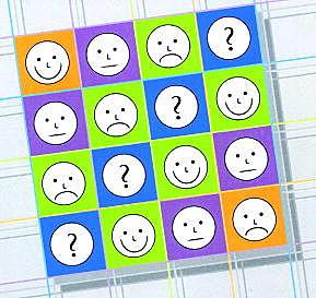 I alt fire spørgsmål belyste processen og resultatet. De blev besvaret på skalaen: »Ja«, »Både-og«, »Nej« og »Ved ikke«. Og en helhedsvurdering blev vurderet på en fempunktskala fra »Enestående« til »Uacceptabelt«. Disse fem spørgsmål var gennemgående for alle fire perioder. Herudover blev der i de enkelte runder stillet supplerende spørgsmål. Næsten alle spørgsmål havde åbne svarfelter for at sikre plads til det uventede og det kritiske.