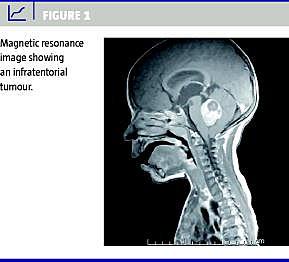 I alt havde 23 børn opkastning i en periode, der mediant varede 30 dage (interval 3-330 dage), før diagnosen blev stillet, 23 havde hovedpine i 75 dage (5-730), 16 havde ataksi i 75 dage (1-730), og 12 oplevede sløvhed i 25 dage (1-730). Andre symptomer forekom med mindre hyppighed.