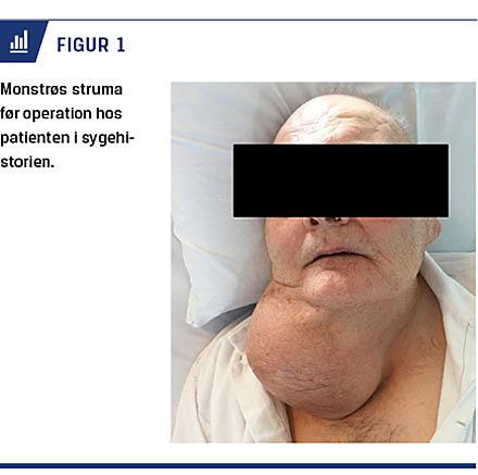 Forstørret skjoldbruskkirtel eller struma er en hyppig tilstand i Danmark og ses hos 10% af befolkningen. Tilstanden er hyppigst hos kvinder og har sammenhæng med utilstrækkeligt jodindtag i kombination med andre faktorer som genetisk disposition, tobaksforbrug og graviditet [1]. Monstrøs struma er derimod sjælden i Danmark. Thyreoideanoduli vokser kun langsomt med vækstrater på 0-20% pr. år, hvilket efterlader rig mulighed for intervention, inden strumaen når monstrøs størrelse.