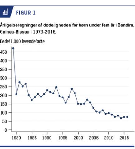 Da Guinea-Bissau blev selvstændigt i 1974, var Sverige landets største donor. Simple analyser af antallet af børn i forskellige aldersgrupper tydede på, at 50% døde, før de blev fem år gamle. Som det kan ses i Figur 1, var det også den dødelighed, vi observerede i det første år. På det tidspunkt vidste alle, at »underernæring« var den væsentligste årsag til høj børnedødelighed. Derfor finansierede Sverige i 1978 et etårigt studie for at finde årsagerne til underernæringen i Guinea-Bissau. Dette projekt blev starten på Bandim Health Project (BHP).
