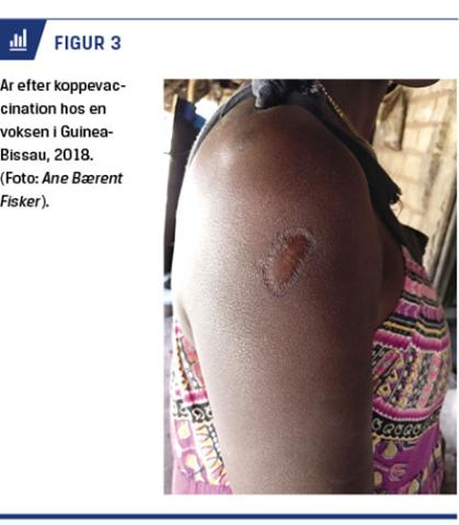 En interessant konsekvens af uspecifikke effekter er, at man uden at vide det kan komme til gøre mere skade end gavn. Hvis en levende vaccine har gavnlige uspecifikke effekter, og man stopper vaccinen, når sygdommen er udryddet eller ikke længere er en risiko, vil det forhindre mange i et få gavnlig immuntræning. I Danmark har man stoppet brugen af tre levende vacciner (koppevaccine, BCG og OPV) uden at have undersøgt, hvad konsekvensen kunne være. Da vi først blev klar over, at vaccinestop kunne have negative konsekvenser, gav vi os til at undersøge voksne i Guinea-Bissau for koppevaccine- og BCG-ar (Figur 3). I både det urbane og det rural område, som BHP har fulgt, var koppevaccinen forbundet med en langt kraftigere gavnlig effekt, end vi havde drømt om [21]. Kontrolleret for andre faktorer havde koppevaccinerede 40% lavere dødelighed end ikkekoppe- og BCG-vaccinerede personer. Vi tog denne observation tilbage til Danmark, hvor vi vha. skolehelbredskortene i København kunne få information om børns vaccinationsstatus i 1970’erne, da både koppevaccinen og BCG blev udfaset. Vha. danske registre kunne alle følges. Kontrolleret for andre faktorer, var koppevaccine og/eller BCG forbundet med 43% (95% konfidens-interval (KI): 19-60%) lavere dødelighed af naturlige dødsårsager mellem skolestart og 45-årsalderen end ingen vaccine [22].