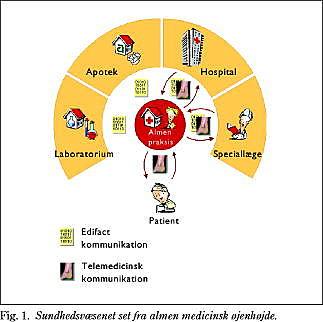 Vi starter med kontaktfladen mellem primær- og sekundærsektor, dernæst behandler vi fladen mellem patient og almen praksis. Vi fortsætter med en international status på området og opstiller en liste med »gode råd«. Vi vil slutte med betragtninger omkring datasikkerhed (Fig. 1 ).