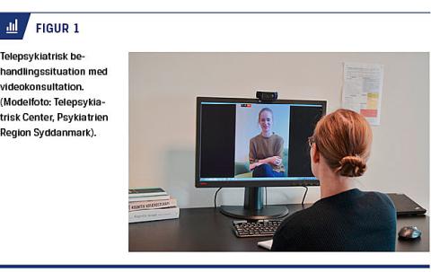 Psykisk sygdom rammer en voksende del af den danske befolkning [1]. Med stigende behandlingsbehov og begrænsede ressourcer i psykiatrien er der øget opmærksomhed på nye metoder til forebyggelse og behandling af psykisk sygdom. Telepsykiatri kan defineres snævert som anvendelse af videokonsultation til kontakt mellem patient og behandler (Figur 1), og det kan anvendes som fællesbetegnelse for levering af psykiatriske ydelser over afstand ved hjælp af informations- og kommunikationsteknologi [2]. På engelsk anvender man begrebet e-mental health, der dækker over teknologibaseret forebyggelse, behandling og helbredelse ved psykisk sygdom. Der findes ikke et dansk begreb, der omfatter både videokonsultation og nyere digitale teknologier. I det følgende anvendes derfor betegnelsen telepsykiatri om anvendelse af forskellige digitale teknologier til forebyggelse og behandling i psykiatrien.